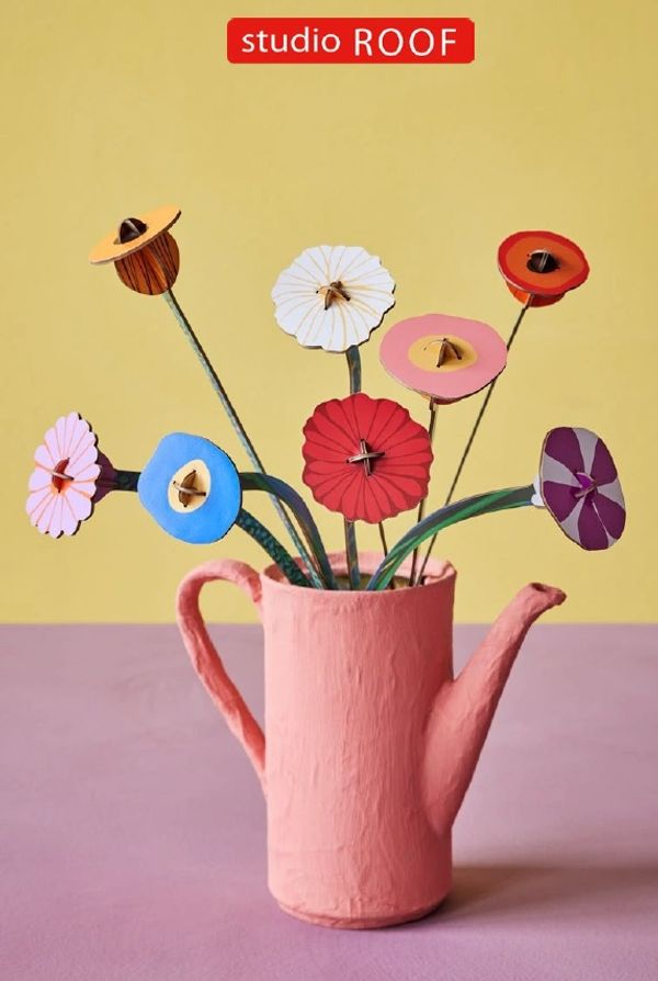 Studio ROOF is a Dutch design studio known for its vibrant, artistic creations made from recycled cardboard and printed with vegetable-based inks—safe for all ages and environmentally conscious. Their products are playful, nature-inspired, and spark imagination in both children and adults.